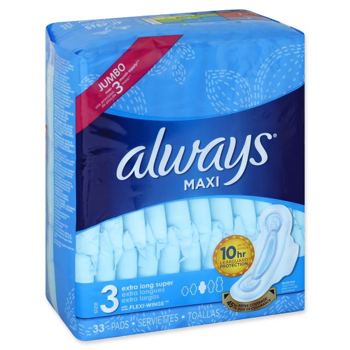 Always Maxi Extra Long Unscented Super Pads With Wings offers the right protection with LeakGuard™ Core, absorbs in seconds for up to 10 hours of protection and a flexible design to protect comfortably and move with you.