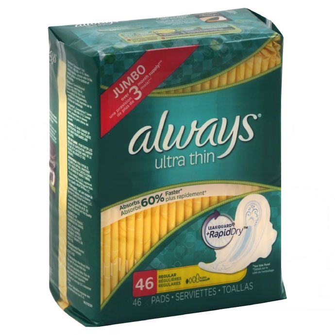 Absorbs 60% faster (vs. the leading store brand Ultra Thin pad of comparable size). LeakGuard + RapidDry. Over 3 month supply (based on average US consumer usage)! Clean. Dry. Fresh. During the day. Up to 8 hour absorbency for your busiest days. 3WayGrip flexi-wings help your pad stay put. Always Guarantee: Satisfaction guaranteed. Imported.