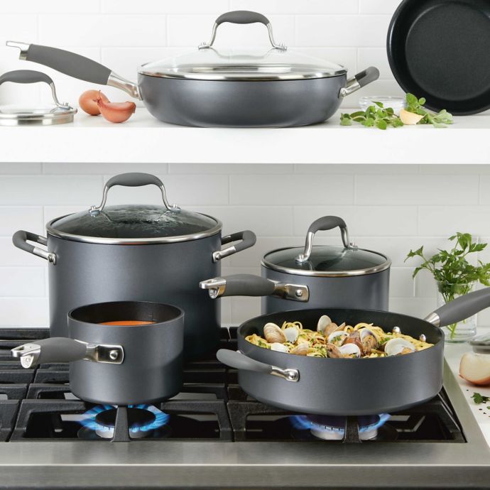 Anolon Advanced cookware is made of heavy gauge, hard-anodized aluminum that delivers fast, even heating for great cooking performance. Features restaurant-tested nonstick technology and Sure Grip handles that offer a soft, comfortable grip.