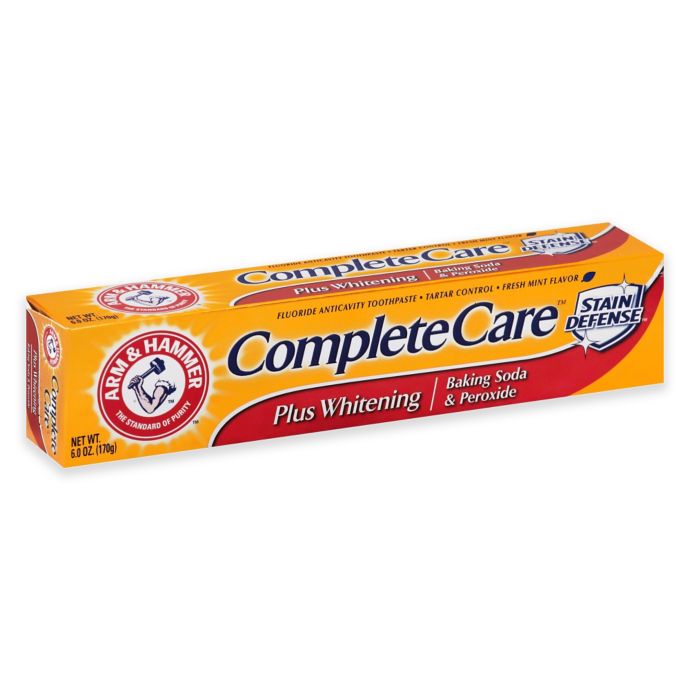 Get an unbelievably white smile while building stronger teeth with the Arm & Hammer Complete Care Plus Whitening Toothpaste. A mix of baking soda and peroxide gently whitens as you brush. Features a traditional mint flavoring that promotes better breath.