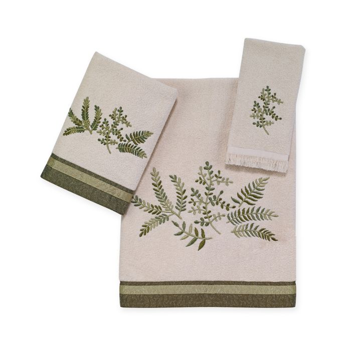 Foliage embroidery in shades of green are a lovely embellishment to these Avanti Greenwood Bath Towels. Finished off perfectly with a textured fabric band.