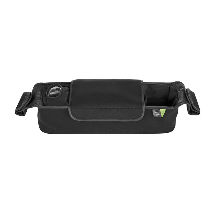 The Baby Jogger Parent Console offers convenient storage for parents on the go. This handy console features an insulated cup holder, a large covered storage pouch with interior pockets, and an open pouch that doubles as a second cup holder.
