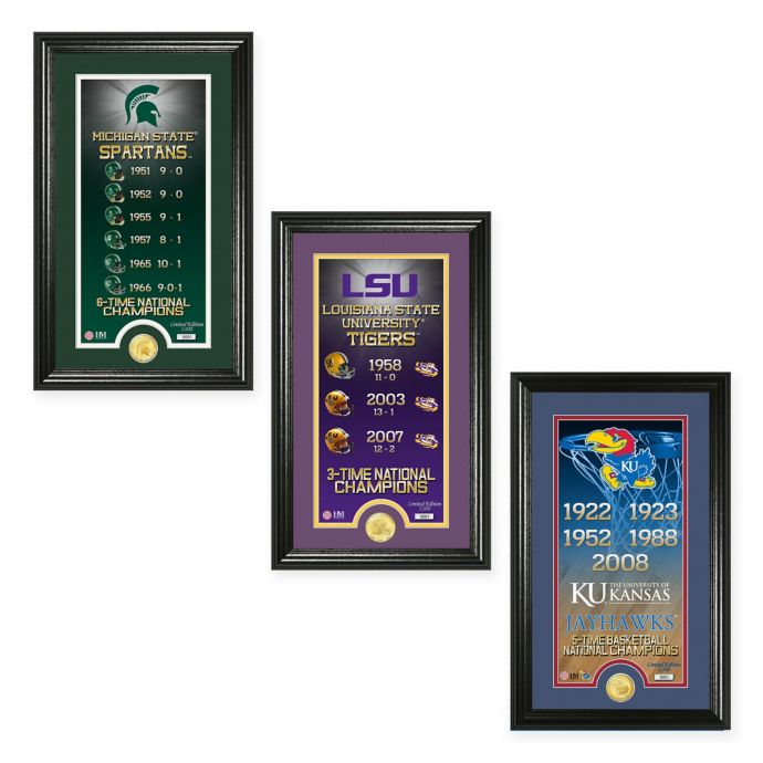 Show your team pride with this Collegiate Legacy Pano Bronze Coin Photo Mint. This unique framed piece features a commemorative 39mm minted coin as well as each year the school won a national championship. Looks great in a game room or man cave.