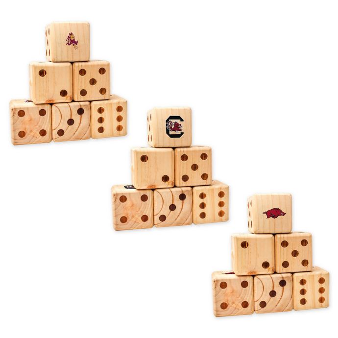 Put your school pride on display at your next picnic or BBQ with this Collegiate Yard Dice Game. Six extra-large wooden yard dice with your team's logo provide endless fun for family and friends while playing countless dice games and variations.