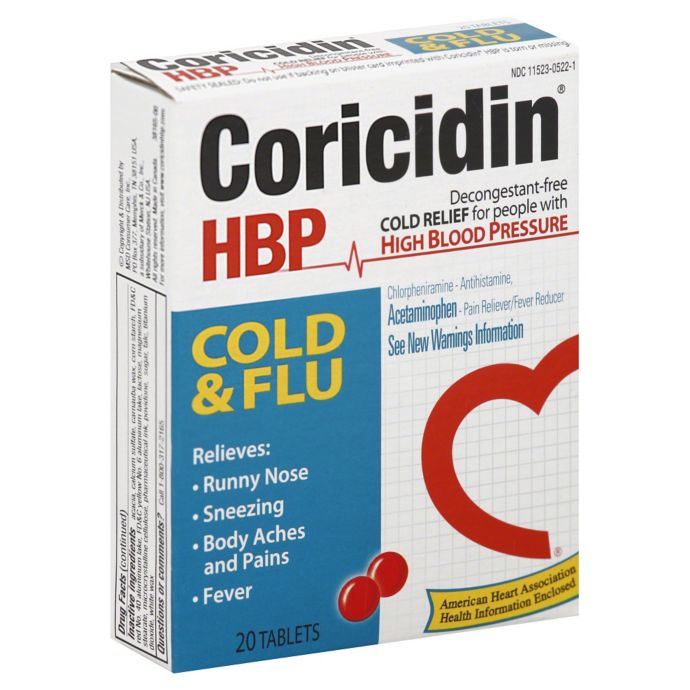 - Coricidin® HBP 20-Count Cold & Flu Tablets