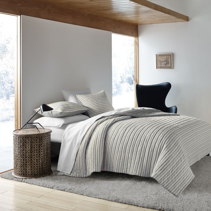 ED Ellen DeGeneres Horizon Pillow Sham features subtle grey stripes in an all-cotton knit construction and a hand quilted channel stitch detail