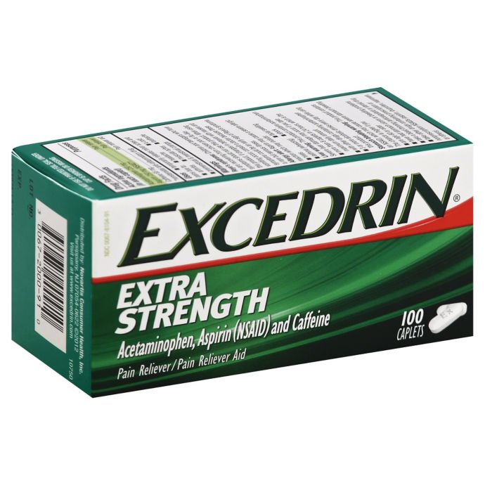 Warnings: Reye's syndrome warning: Children and teenagers who have or are recovering from chicken pox or flu-like symptoms should not use this product. When using this product, if changes in behavior with nausea and vomiting occur, consult a doctor because these symptoms could be an early sign of Reye's syndrome, a rare but serious illness. Allergy alert: Aspirin may cause a severe allergic reaction which may include: hives; facial swelling; asthma (wheezing); shock. Liver warning: This product contains acetaminophen. Severe liver damage may occur if you take more than 8 caplets in 24 hours, which is the maximum daily amount; with other drugs containing acetaminophen; 3 or more alcoholic drinks every day while using this product. Stomach bleeding: This product contains an NSAID, which may cause severe stomach bleeding. The chance is higher if you are age 60 or older; have had stomach ulcers or bleeding problems; take a blood thinning (anticoagulant) or steroid drug; take other drugs containing prescription or nonprescription NSAIDs (aspirin, ibuprofen, naproxen, or others); have 3 or more alcoholic drinks every day while using this product; take more or for a longer time than directed. Do not use: if you have ever had an allergic reaction to acetaminophen, aspirin or any other pain reliever/fever reducer; with any other drug containing acetaminophen (prescription or nonprescription). If you are not sure whether a drug contains acetaminophen, ask a doctor or pharmacist. Ask a doctor before use if you have liver disease; stomach bleeding warning applies to you; you have a history of stomach problems, such as heartburn; you have high blood pressure, heart disease, liver cirrhosis, or kidney disease; you are taking a diuretic; you have asthma. Ask a doctor or pharmacist before use if you are taking a prescription drug for diabetes, gout, or arthritis; any other drug, or are under a doctor's care for any serious condition. Stop use and ask a doctor if: an allergic reaction occurs (Seek medical help right away); you experience any of the following signs of stomach bleeding: feel faint, vomit blood, have bloody or black stools, have stomach pain that does not get better; ringing in the ears or loss of hearing occurs; painful area is red or swollen; pain gets worse or lasts for more than 10 days; fever gets worse or lasts for more than 3 days; any new symptoms occur. These could be signs of a serious condition. Pregnancy/breast-feeding warning: If pregnant or breast-feeding, ask a health professional before use. It is especially important not to use aspirin during the last 3 months of pregnancy unless definitely directed to do so by a doctor because it may cause problems in the unborn child or complications during delivery. Keep out of reach of children. In case of overdose, get medical help or contact a Poison Control Center right away. Quick medical attention is critical for adults as well as for children even if you do not notice any signs or symptoms. Other warnings: Caffeine Warning: The recommended dose of this product contains about as much caffeine as a cup of coffee. Limit the use of caffeine-containing medications, foods, or beverages while taking this product because too much caffeine may cause nervousness, irritability, sleeplessness, and, occasionally, rapid heart beat. Do not use if printed foil seal under cap is broken or missing.