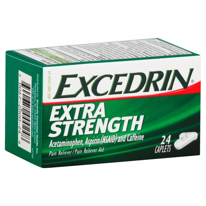 Reye's syndrome warning: Children and teenagers who have or are recovering from chicken pox or flu-like symptoms should not use this product. When using this product, if changes in behavior with nausea and vomiting occur, consult a doctor because these symptoms could be an early sign of Reye's syndrome, a rare but serious illness. Allergy alert: Aspirin may cause a severe allergic reaction which may include: hives; facial swelling; asthma (wheezing); shock. Liver warning: This product contains acetaminophen. Severe liver damage may occur if you take more than 8 caplets in 24 hours, which is the maximum daily amount; with other drugs containing acetaminophen; 3 or more alcoholic drinks every day while using this product. Stomach bleeding: This product contains an NSAID, which may cause severe stomach bleeding. The chance is higher if you are age 60 or older; have had stomach ulcers or bleeding problems; take a blood thinning (anticoagulant) or steroid drug; take other drugs containing prescription or nonprescription NSAIDs (aspirin, ibuprofen, naproxen, or others); have 3 or more alcoholic drinks every day while using this product; take more or for a longer time than directed. Do not use: if you have ever had an allergic reaction to acetaminophen, aspirin or any other pain reliever/fever reducer; with any other drug containing acetaminophen (prescription or nonprescription). If you are not sure whether a drug contains acetaminophen, ask a doctor or pharmacist. Ask a doctor before use if you have liver disease; stomach bleeding warning applies to you; you have a history of stomach problems, such as heartburn; you have high blood pressure, heart disease, liver cirrhosis, or kidney disease; you are taking a diuretic; you have asthma. Ask a doctor or pharmacist before use if you are taking a prescription drug for diabetes, gout, or arthritis; any other drug, or are under a doctor's care for any serious condition. Stop use and ask a doctor if: an allergic reaction occurs (Seek medical help right away); you experience any of the following signs of stomach bleeding: feel faint, vomit blood, have bloody or black stools, have stomach pain that does not get better; ringing in the ears or loss of hearing occurs; painful area is red or swollen; pain gets worse or lasts for more than 10 days; fever gets worse or lasts for more than 3 days; any new symptoms occur. These could be signs of a serious condition. Pregnancy/breast-feeding warning: If pregnant or breast-feeding, ask a health professional before use. It is especially important not to use aspirin during the last 3 months of pregnancy unless definitely directed to do so by a doctor because it may cause problems in the unborn child or complications during delivery. Keep out of reach of children. In case of overdose, get medical help or contact a Poison Control Center right away. Quick medical attention is critical for adults as well as for children even if you do not notice any signs or symptoms. Other warnings: Caffeine Warning: The recommended dose of this product contains about as much caffeine as a cup of coffee. Limit the use of caffeine-containing medications, foods, or beverages while taking this product because too much caffeine may cause nervousness, irritability, sleeplessness, and, occasionally, rapid heart beat. Do not use is printed foil seal under cap is broken or missing.