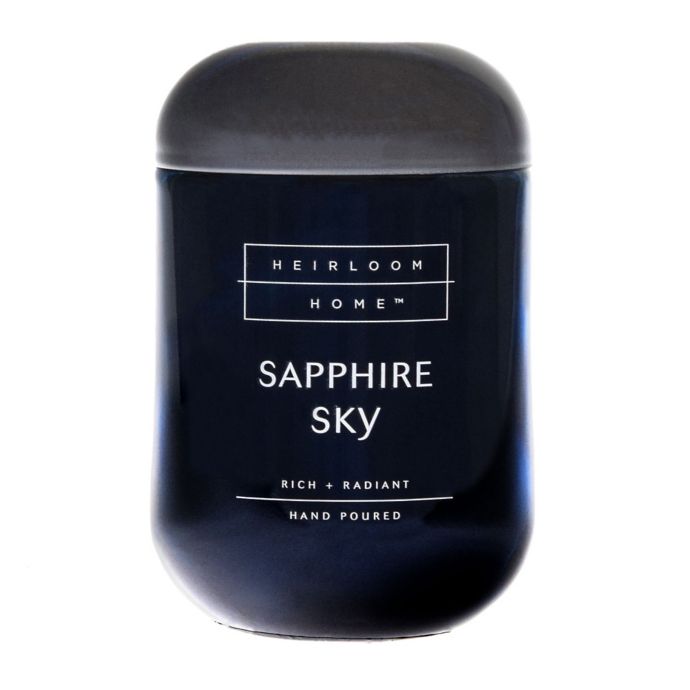Add a pleasant, long-lasting scent to your home with the Heirloom Home Sapphire Sky Jar Candle. This high quality, hand-poured jar candle provides soothing fragrance, a stylish glass vessel with a colorful, decorative metal lid.