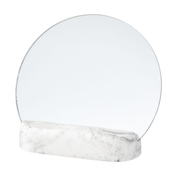 iDesign's Dakota Mirror is a sleek design done in a white marble finish. This compact mirror has a grip on the back making it portable and easy to handle.