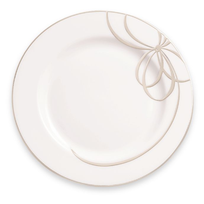 kate spade new york's charming Belle Boulevard Dinnerware brings an elegant yet playful look to your table. This chic, white bone china with platinum banding and a looped bow motif has an easy, style that makes any meal feel celebratory.