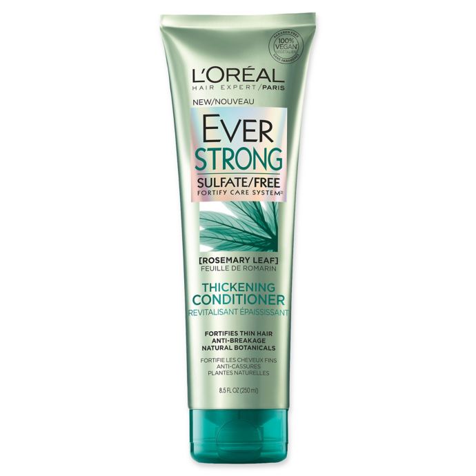 L'Oréal Hair Expertise EverStrong Thickening Conditioner is infused with stimulating rosemary and juniper to deeply conditions and strengthen fragile, thin hair. Sulfate-free and helps thinning hair look and feel thicker, stronger.