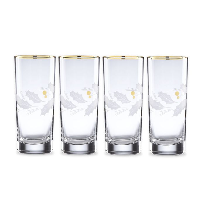 Celebrate the holidays in style with the Holiday Highball Glasses by Lenox. Perfect for entertaining, these glasses are elegantly hand-etched with a festive holly motif and rimmed in gold, bringing a regal look to your cocktails.
