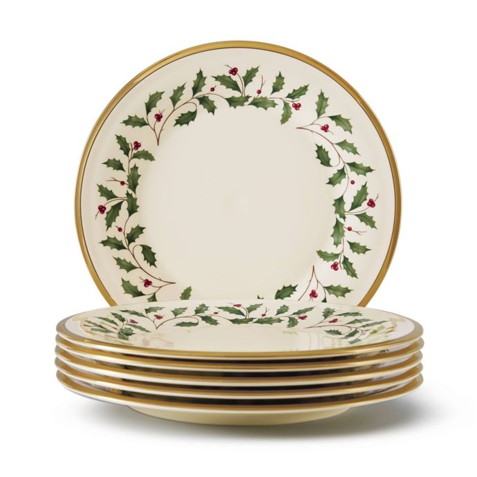Lenox's beloved Holiday Collection beautifully captures the spirit of the season. Adorned with a festive wreath of deep green holly, ripe red berries, and 24K gold on ivory fine china, this pattern is sure to become a family tradition.