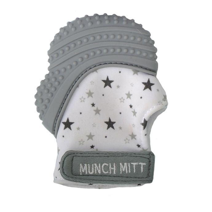 The innovative Munch Baby Munch Mitt is a clever teether for your baby. It slips over baby's hand like a mitten so it won't be easily dropped or lost. The nubby food-grade silicone provides soothing relief to your baby's sore gums.