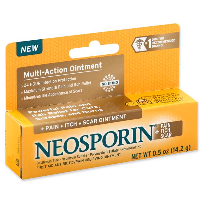 - Neosporin® .5 oz. First Aid Antibiotic/Pain Relieving + Pain Itch Scar Multi-Action Ointment