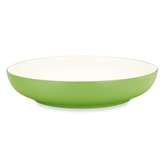 The simple, modern style of the Noritake Colorwave Pasta Serving Bowl makes it perfect for updating your table setting. This bowl is crafted of durable stoneware, and it features both a glossy cream interior and a colorful matte exterior.