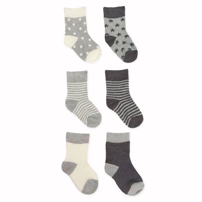 - Set includes 6 pairs of socks, each with a different combination of stripes, dots, stars and solid colors