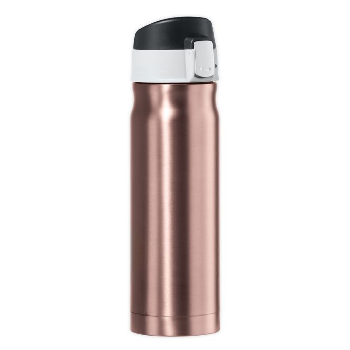 The Oggi Caliber Travel Flask boasts double-walled vacuum insulate technology for keeping cold drinks cold for up to 24 hours and hot drinks hot for up to 12 hours. Screw on lid has a locking spring and push button for easy one-handed drinking.