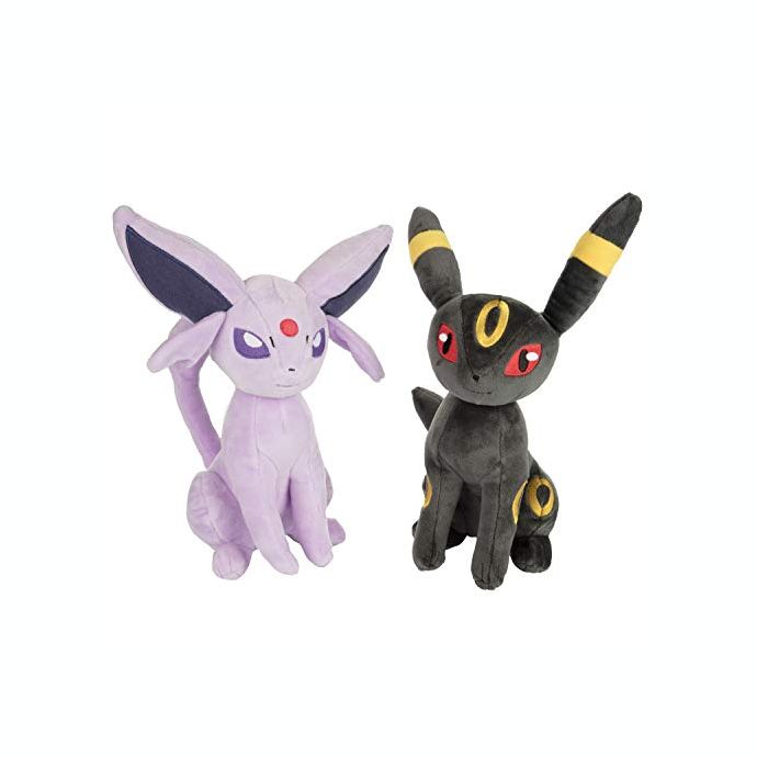 Cute and cuddly 8" Espeon and Umbreon Pokemon Plush Stuffed Animals are a must have for all Pokemon fans! This super soft plush figure is great to take wherever you go! The Espeon and Umbreon plush toy is inspired by Pokémon anime, trading cards, Let's Go!, Sword and Shield and Nintendo video games series! Makes a great gift for fans of Pokemon - Your favorite Pokémon character is waiting for you! Officially licensed Pokémon merchandise by Wicked Cool Toys. Polyester. Measures 11" to top of ear. Ages 2+