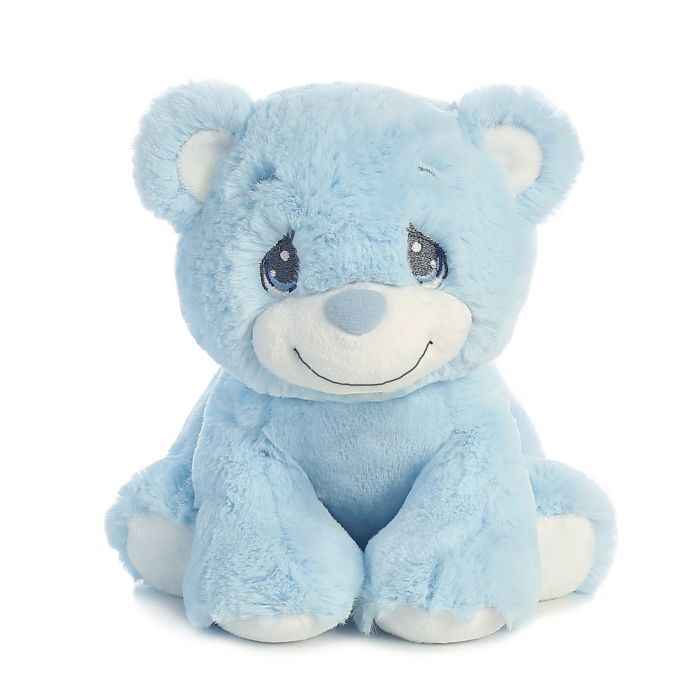 Your little one will love to cuddle up with the Precious Moments Charlie Bear. Made of plush fabric, your child will take this light blue bear everywhere you go together. Velour fabric on the ears and paw pads are especially soft.