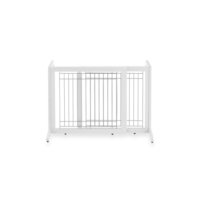 Keep your pet safely confined in your home with the Richell Freestanding Origami Pet Gate. A freestanding design, its low height allows you to step over it with ease, while side panels and and rubber feet keep it fromt ipping over or sliding.