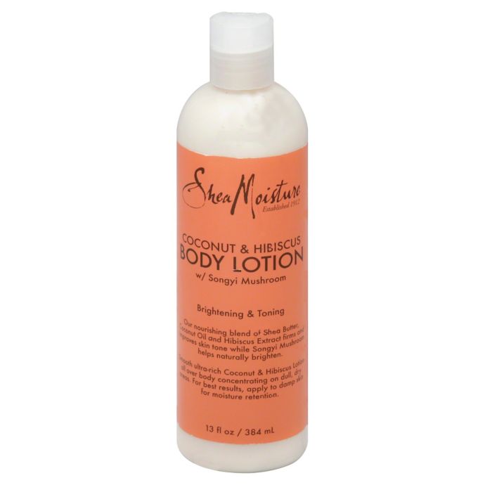 - Smooth ultra-rich SheaMoisture Brightening and Toning Coconut & Hibiscus Body Lotion all over body concentrating on dull, dry areas to improve skin tone and nourish your skin