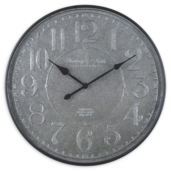 Create a bold impression of rustic craftsmanship with the Farmhouse Collection Blacksmith Galvanized Wall Clock from Sterling & Noble. Numerals and minute track elements are embossed into the metal dial, set in an industrial black finish frame.