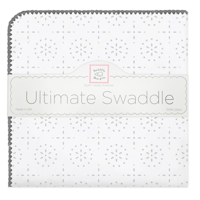 Designer Lynette Damir's Sterling Sparklers print is sweet yet sophisticated. Handcrafted swaddling blanket made of baby soft, breathable, premium cotton flannel features the SwaddleDesigns' signature stitch.