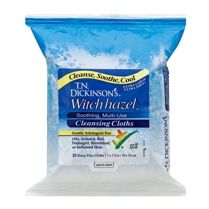 Formulated with 100% Witch Hazel, these extra-large and ultra-soft T.N. Dickinson's Witch Hazel Cleansing Cloths gently soothe and cool as they clean.