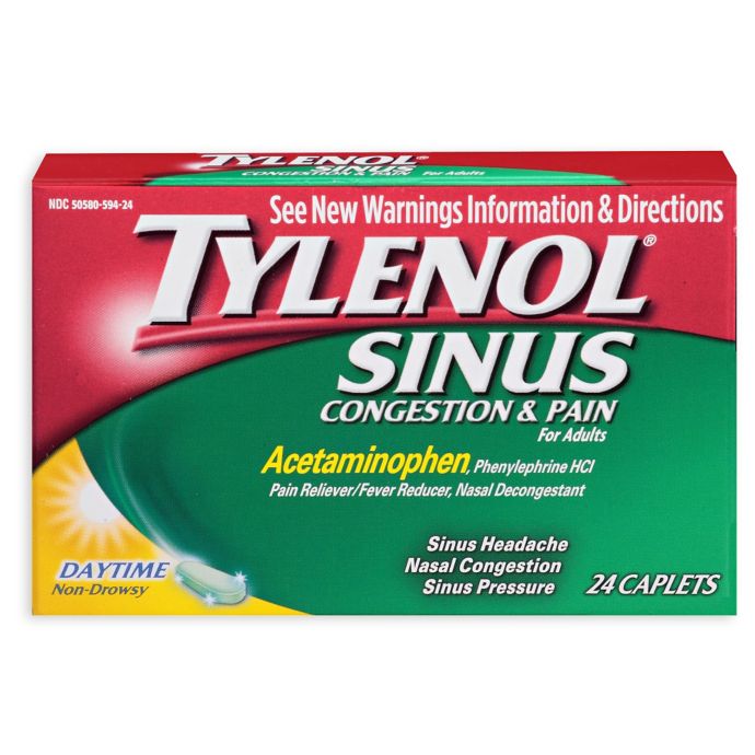 - Tylenol® Sinus Congestion & Pain Daytime 24-Count Caplets