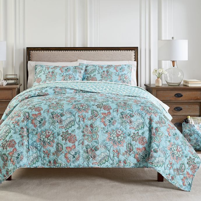 Give your bedroom a luxurious and fresh update with the Waverly Sri Lankan Quilt Set. Crafted of plain-weave fabric, this bedding set features a timeless floral design and reverses to a coordinating geometric pattern to complement furnishings and decor.