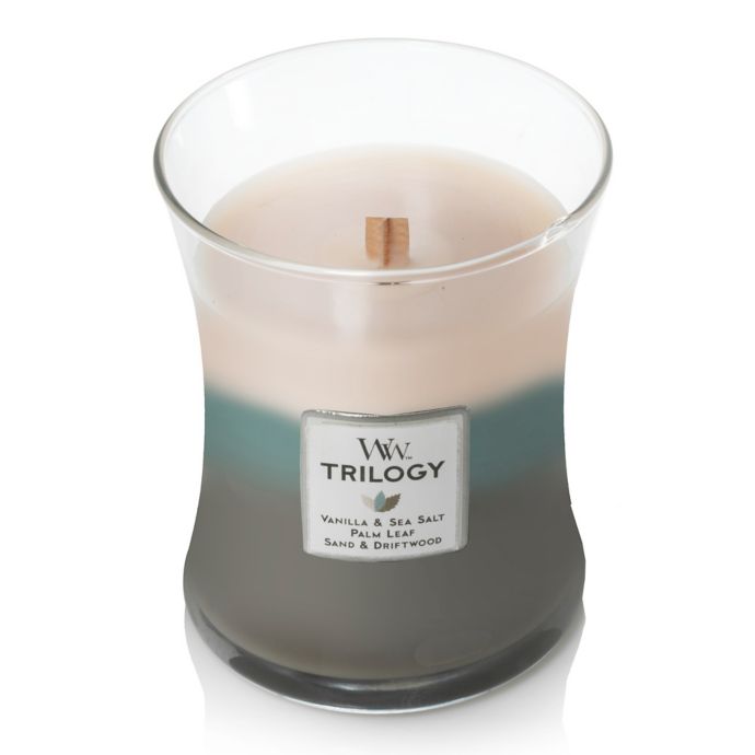 Get 3 different fragrances in 1 WoodWick Trilogy Jar Candle. As it burns through the layers, the different aromas are released and blend together in unique combinations.